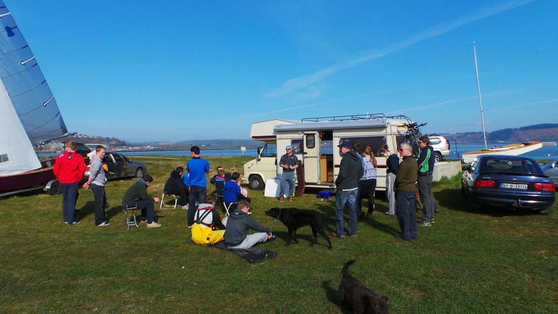 The ideal number of 6 GPs with 12 keen sailors ranging in age from 14 upwards and from 4 different clubs participated in 3 days of coaching organised under the burgee of Youghal Sailing Club (formed only 4 months). Spring arrived on call and provided sunshine and light breezes, pretty much ideal for Troy Mc Namara our lead coach to get things going onshore at out temporary campervan club house on Ferrypoint, an ideal location in the centre of this beautiful natural harbour.